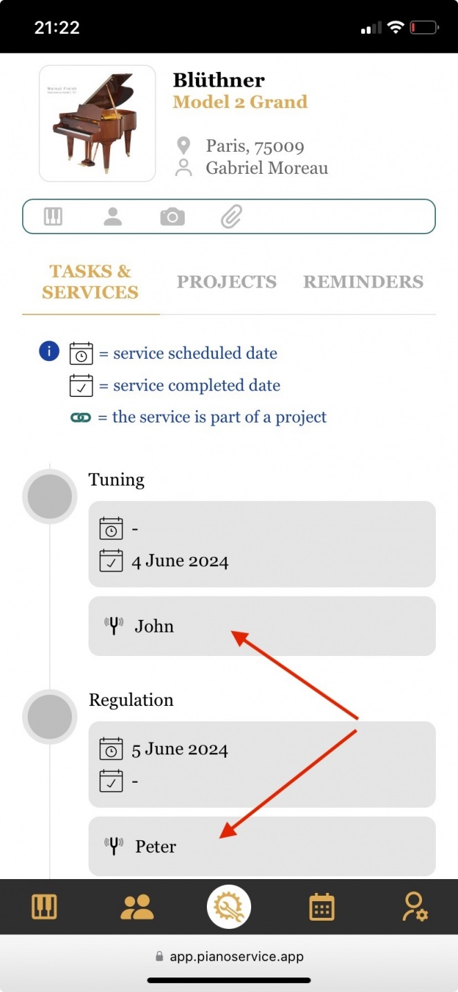 There are instances when you want to service a specific piano and you want to know which piano technician serviced it previously or which one will service it next.